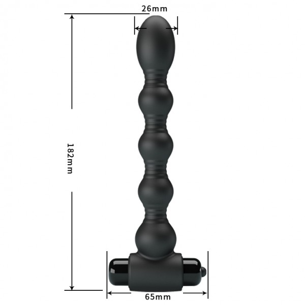 Выполнен вибратор в виде рельефного ствола из 5 шариков различного диаметра. Надежный ограничитель в виде вибропули гарантирует идеальную фиксацию девайса внутри