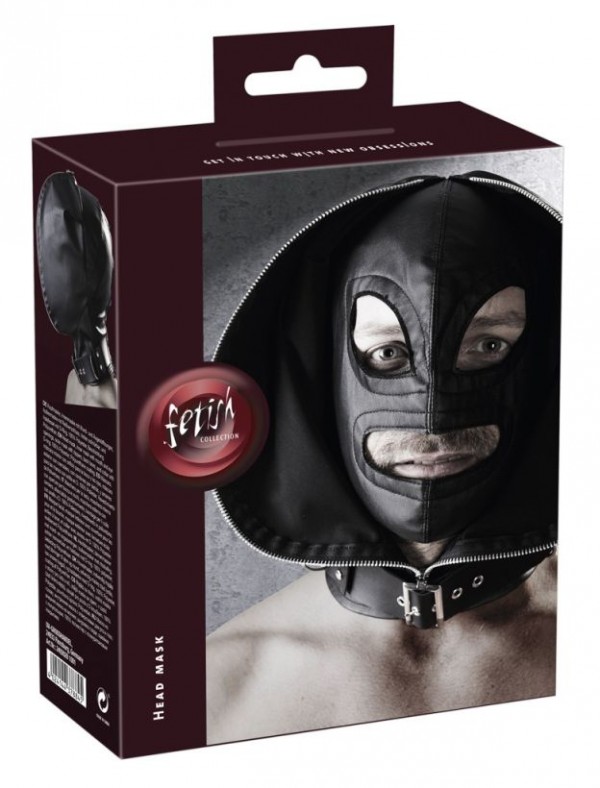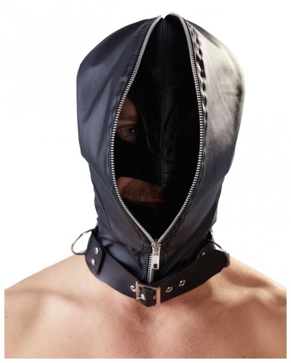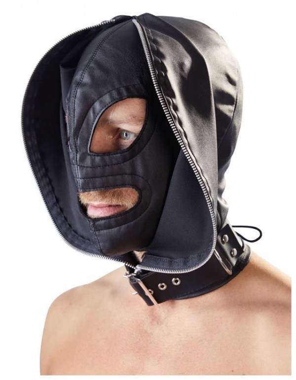 Внутренняя маска имеет разрезы на уровне глаз и рта. При этом, внешняя маска просто открывается и образует своеобразный воротник! Если же, Вам необходима полнейшая депривация закрываем молнию!