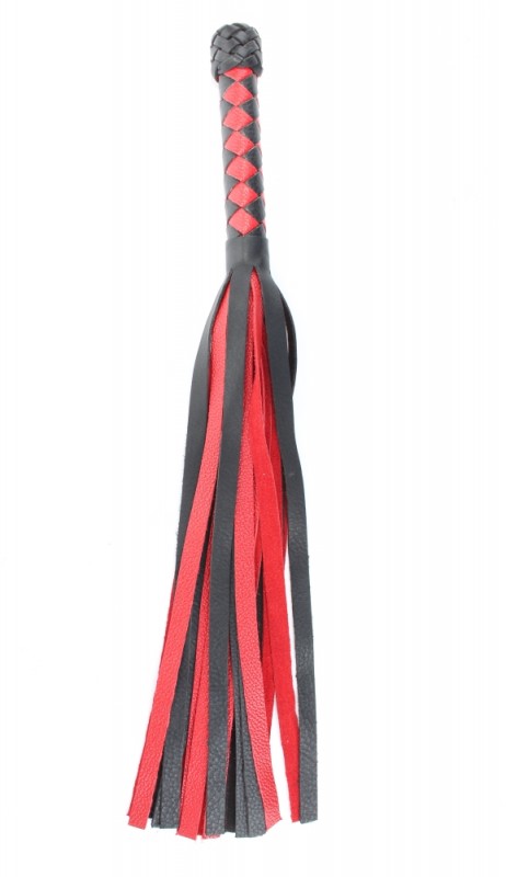 Плеть-многохвостка "BDSM-Арсенал" черно-красная, кожа