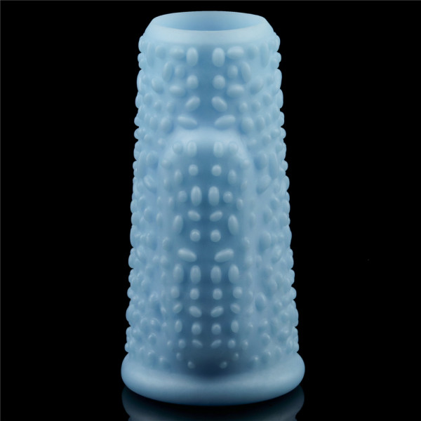 Выполнена насадка из нежного, бархатистого и эластичного материала TPE (термопластичный эластомер) в голубом цвете. Идеально фиксируется на половом члене, плотно облегая. Не натирает, не пережимает и не передавливает