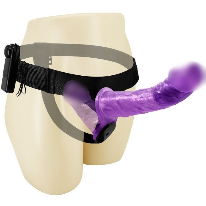 Страпон с вагинальной втулкой "Ultra Passionate Harness" с вибрацией, фиолетовый